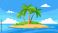 • Tropical Island with Palm Trees and Calm Ocean Under a Sunny Blue Sky