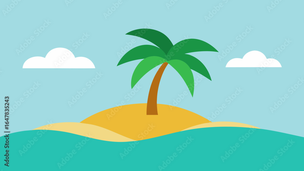 Plakat Wyspy - flat style tropical island palm trees ocean #1647835243