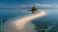 • Island retreat Sandbar stretches out; mountains rise from the calm sea background