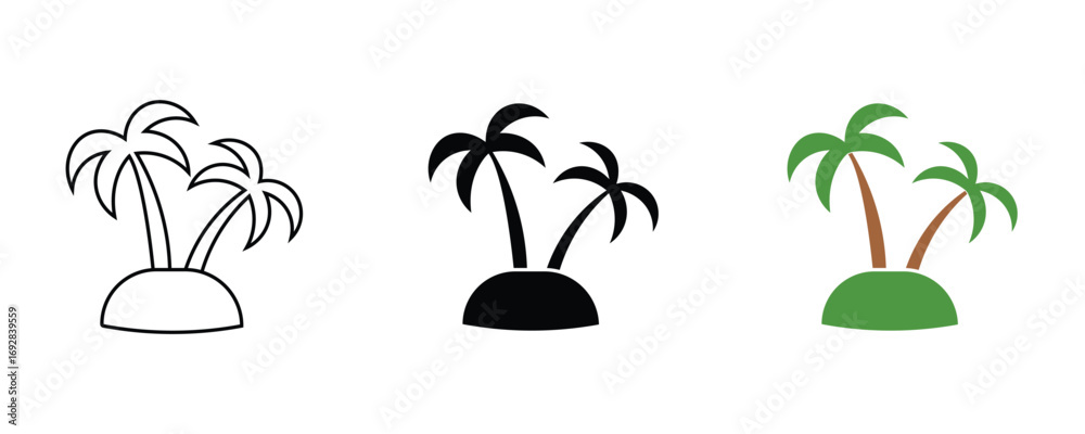 • Palm tree icon set vector on white background. glyph, color, tropical, island, summer, vacation, beach, plant, nature, symbol.