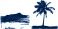 • Tropical island scene with palm tree silhouette in black ink for nature-themed design
