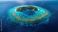 • Aerial view of a stunning tropical island with a vibrant coral reef in clear turquoise ocean water, showcasing pristine marine beauty from above