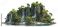 • Tropical island with palm trees and cascading waterfalls, isolated on transparent cutout background