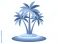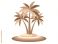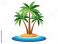 • A vibrant illustration of a small tropical island with three lush palm trees swaying gently in the clear blue ocean.