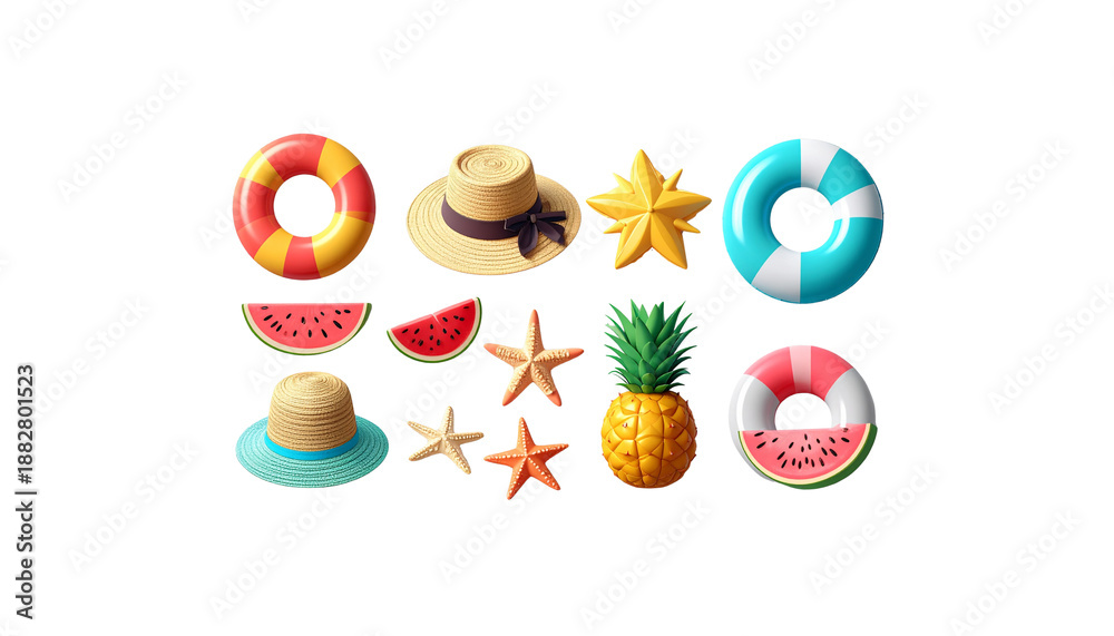 Plakat Wyspy - Beach equipment in summer, isolated on a white background #1882801523