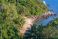 • Top view on the Cu Lao Cham island near Da Nang city, Vietnam. Mountain with green trees, sandy beach and blue sea water