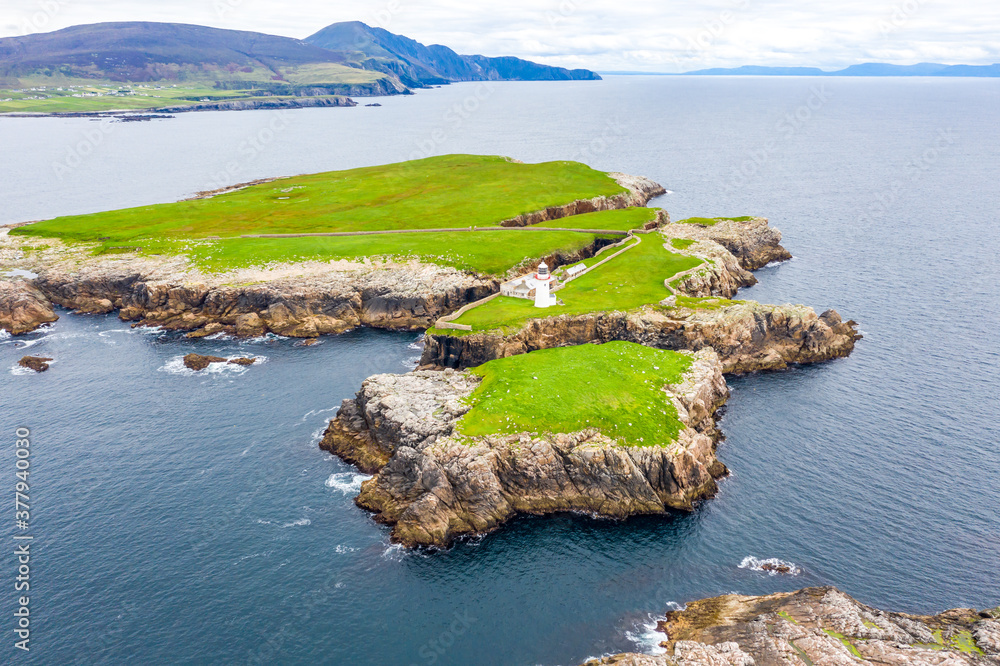 Plakat Wyspy - Aerial view of Rathlin O'Birne island in County Donegal, Irleand. #377940030