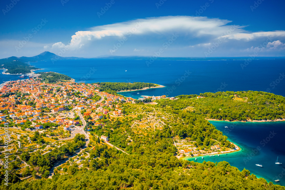 Plakat Wyspy - Old town Mali Losinj on Adriatic island under blue sky. Location place Kvarner gulf, Croatia,... #407960321