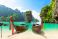 • Travel photo of James Bond island with thai traditional wooden longtail boat and beautiful sand beach in Phang Nga bay, Thailand.