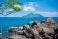 • Blue sea and blue sky with changing white clouds. Small islands and rocks. Guishan Island(Turtle Island) is a volcanic island in the Pacific Ocean. Taiwan