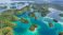• Aerial View of the Thousand Islands in the Togean National Park, Central Sulawesi, Indonesia. Similar to Piyanemo view in Raja Ampat.