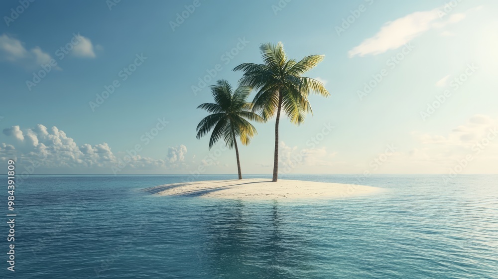 Plakat Wyspy - Deserted island with a lone palm tree #984391809
