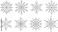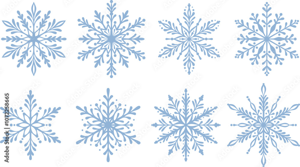 • Elegant snowflake vector pattern set, delicate hand drawn snow crystal shape collection, winter holiday decorative clip art, isolated