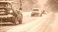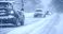 Plakat Zima - Cars driving on snowy road during snowfall in winter #1110617009
