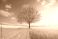 • A single tree splits into winter and summer contrasting a snowy field and a golden one