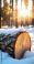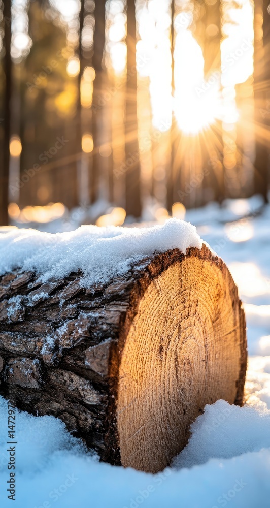 Plakat Zima - Sunbeams on a winter log #1472972353