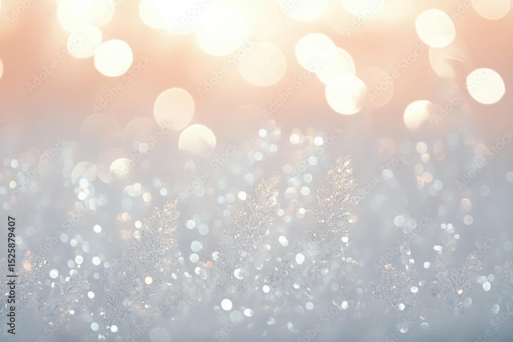 Plakat Zima - Close-up of delicate frost crystals sparkling with soft bokeh lights in the background, creating... #1525879407