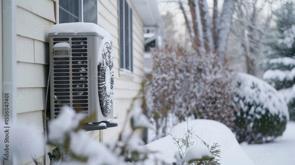 Plakat Zima - outdoor heatpump covered in snow #1556047401