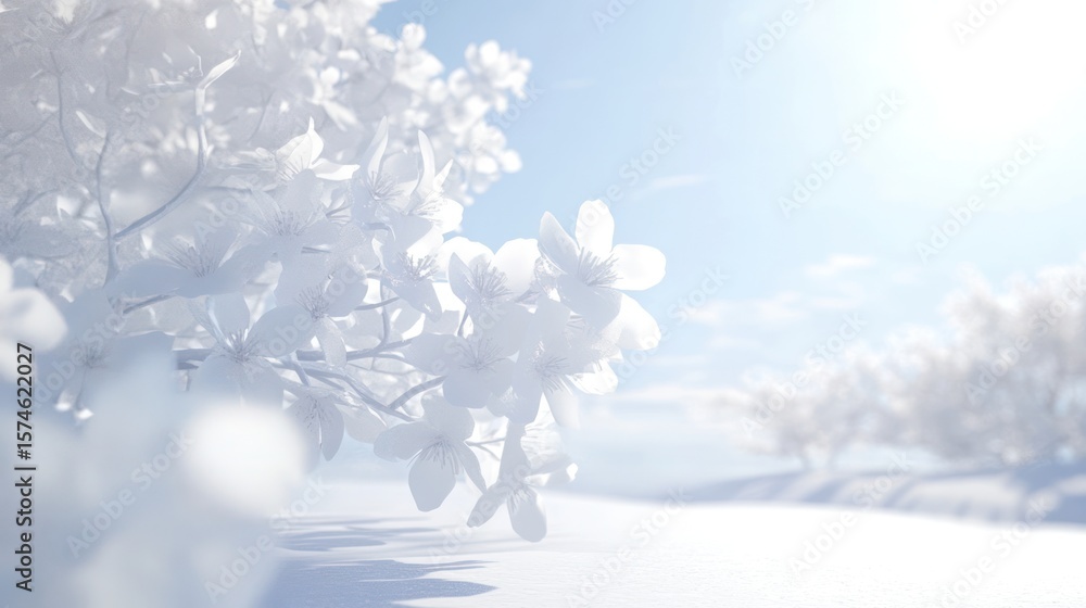 Plakat Zima - White blossoms, snowy landscape, sunny day, winter peace #1574622027