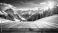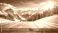 • Polished Wooden Surface with Blurred Snowy Alpine Valley, Clear Winter Sky, Elegant Seasonal Backdrop
