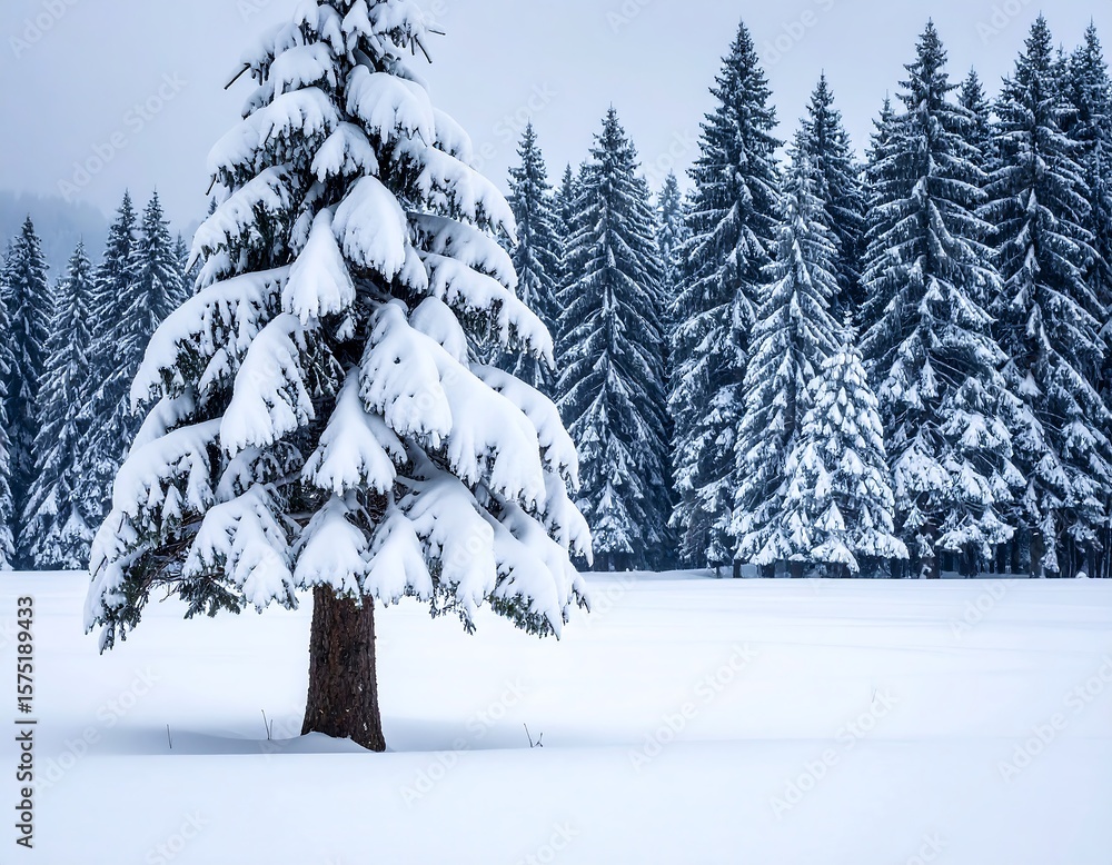 Plakat Zima - Snowy fir tree in a winter landscape #1575189433