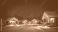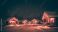 • Enchanting Red Cabins Aglow in Snowy Winter Night Landscape – Cozy Christmas Village Scene with Warm Lights and Falling Snow