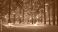 • Snowy pine forest background during blue hour glowing lantern lights magical winter scenery perfect for holiday themes seasonal product promotions and cinematic storyboards