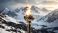 • Olympic torch and Flickering flame above snowy Alpine landscape on a serene winter day. Winter Games in Italy 2026.