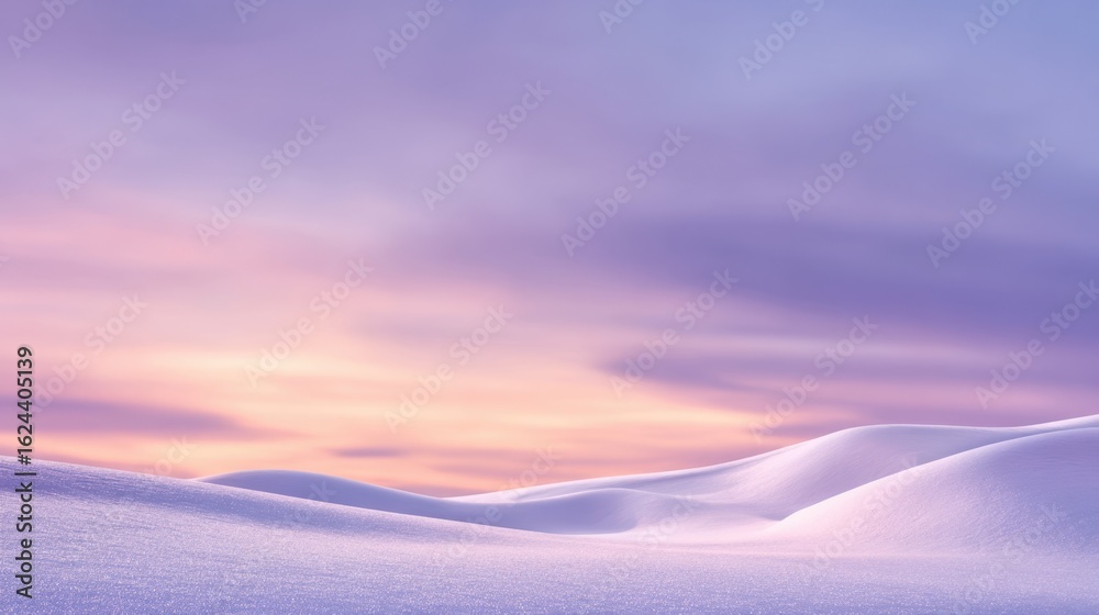 Plakat Zima - The serene beauty of snow-covered hills under a pastel sunset sky. #1624405139