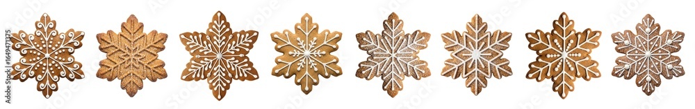 Plakat Zima - Festive gingerbread snowflake cookies with icing decoration isolated, holiday baking decor... #1649471375
