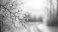 • Frozen tree branch glistening with ice on a cold winter day in the forest