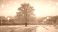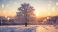 • A magical winter sunrise illuminates a snow-covered tree and landscape, creating a serene and picturesque scene with warm golden light and sparkling bokeh.
