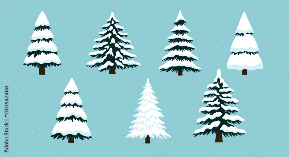 Plakat Zima - Collection of Snow Covered Pine Trees in Winter. #1703542488