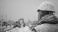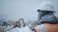 • Snow covered construction worker in high visibility safety vest looking at job site during winter snowfall
