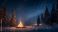 Plakat Zima - Golden glow over evergreens, quiet gathering around winter solstice fire. #1769388447