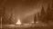 • Golden glow over evergreens, quiet gathering around winter solstice fire.