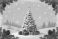 • Snowy christmas tree surrounded by gifts in a winter wonderland
