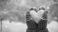 • Cozy winter scene red knitted mittens embrace a snow heart amidst sparkling snow and love