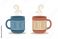 • Pair of steaming coffee mugs wrapped in warm knitted sweater sleeves for winter comfort