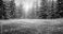 • A snow-covered spruce forest and a sparkling snowy meadow during a gentle snowfall, with a warm winter light in the background, creating an abstract winter Christmas landscape.