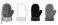 • Set of four winter mitten illustrations in different artistic styles including hand-drawn sketch, simple outline, solid black silhouette, and a colorful flat vector design