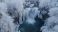 Plakat Zima - Frozen waterfall surrounded by frosted trees . #1854086968
