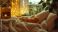Plakat Zima - Room with blanket, mandarins, and fairy lights. #1854089489