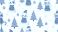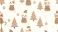 • Adorable Christmas seamless pattern with cute cartoon cats in festive sweaters and Santa hats, Christmas trees, and sweet cupcakes.