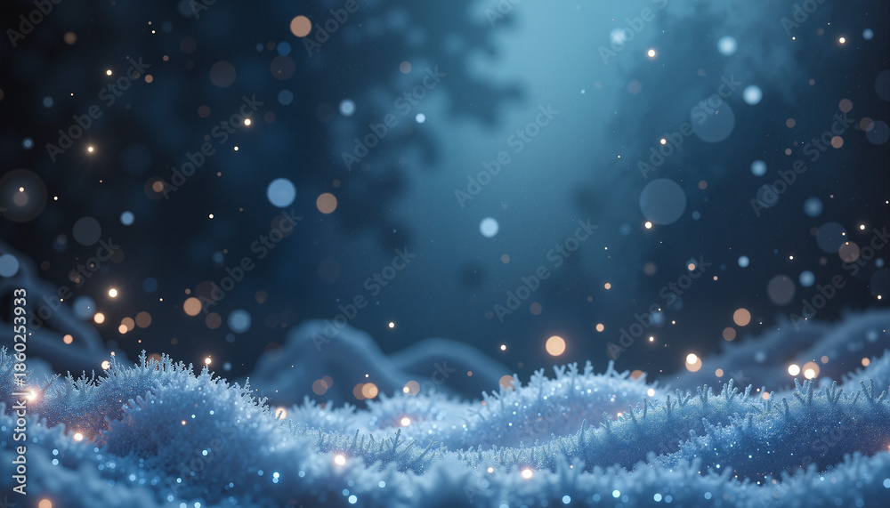 Plakat Zima - serene winter landscape with sparkling snowflakes falling softly amid frosty terrain and abstract... #1860253933