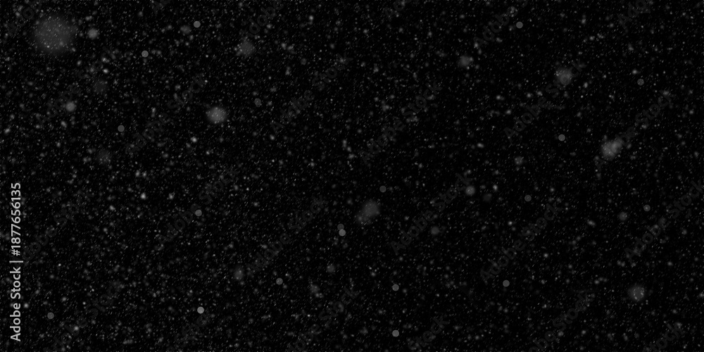 Plakat Zima - Snowflakes falling on a black background, isolated snowfall effect, festive Christmas background,... #1877656135