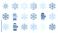 • Winter snowflake and mitten icon set, geometric vector design. Blue and white seasonal symbols collection, clean minimal style. Christmas and winter holiday clipart isolated on white background.