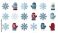 • Winter snowflake mitten icon set. Knitted gloves. Nordic pattern. Christmas holiday. Season frost symbols. Flat vector. Cold weather. Festive decoration. Geometric shape