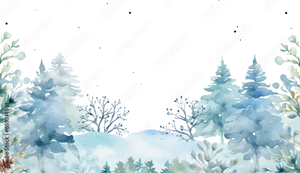 Plakat Zima - Watercolor winter landscape with trees, background #659314961