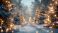• Winter Magic, Snow-covered trees adorned with twinkling lights in a winter wonderland setting, perfect for holiday-themed imagery